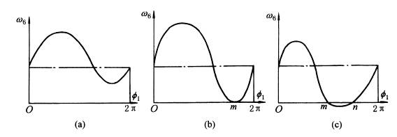 式中 f10、f20、f30——杆1、2、3的起始位置。 4)图(3)所示型式组合机构的输出角速度ω6。