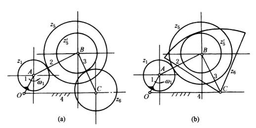 图(1) 四杆铰链机构与周转轮系复联组合机构