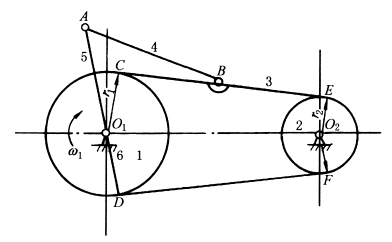 下图所示为一由同步带传动和连杆组成的组合机构 |