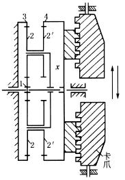 右图中,各轮齿数为z2、z3、z'3和z4,其传动比 若i41得正值,则4与1转向相同;得负值,则转向相反。例如,z3=z'3,z2=z4+1(或z2=z4-1),则可获得i41<0(或i41>0)的大传动比,用作机床的示数机构等。 |