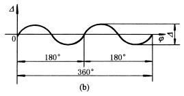 谐波传动是由谐波发生器1、柔性齿轮2(为一容易变形的环状薄壁零件)和刚性齿轮3组成(下图a)。三构件中任何一个皆可为主动,其余一为固定,一为从动。这种机构运动的传递是在发生器的作用下迫使柔轮产生弹性变形并与刚轮相互作用达到传动目的。如图a,当刚轮固定,发生器主动并连续转动时,则从动柔轮各处依次发生啮入、啮合、啮出及脱开四种连续工作状态,这种错齿运动使柔轮反向转动。发生器转动一周时,柔轮转过(z3-z2)/z2周。 柔轮的变形过程是一个基本对称的和谐波(图b)。在传动中发生器转一周,柔轮某一点变形的循环次数叫波数(等于发生器的滚轮数),一般常应用双波和三波。图b是双波变形波。谐波传动机构的刚轮和柔轮的周节t相等,但齿数不等,齿数差一般等于波数(或波数的整数倍)。谐波高Δ等于刚轮与柔轮的分度圆直径之差,即