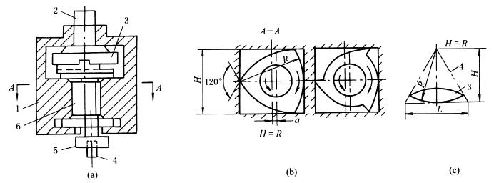 下图a,主轴2通过十字沟槽联轴器3驱使三棱柱杆6在机座1的方孔内绕方孔中心以半径a作圆周运动,三棱柱中心公转的方向与三棱柱沿方孔内边滚动方向相反,三棱柱6通过卡盘5带动三角钻头4重演三棱柱6与方孔之间的相对运动关系,加工出方孔。三棱柱和三角钻头的尖角均为120°,如图b所示。此法加工出的正四方形直角处出现一圆角,圆角半径约为正方形孔边长的0.15倍。 如将机座1的方孔改作成正三角形孔,钻头改成双棱弧形钻,则可加工出正三角形孔(如图c);如将机座1的方孔改作成正六方形孔,钻头改成五边形钻,则可加工出正六方形孔。 |