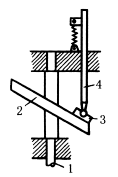 下图中,斜面凸轮2与主动轴1固连,滑块3以球面铰与从动杆4连接,并通过弹簧与凸轮2接触。当主动轴旋转时,从动杆作往复简谐运动。 |