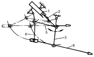 下图中,活塞杆2在摆动气缸1中运动,带动杆3摆动,通过连杆5又使杆4摆动,从而带动塞杆6启闭高炉的出渣口。 |