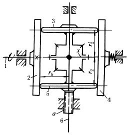 调节螺杆a使整个锥齿轮差动轮系上升或下降,以改变r2和r'2的尺寸,如式中r2>r'2,轴6与盘5转向相同,否则相反。 图(6)原理同图(5),但换向的同时,速比也发生变化。隔不久 |