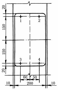 如图所示,一轴承底座用锚栓紧固联接在正常配筋的C30混凝土基础上,基础厚h=100mm。根据受力计算,锚栓1和2受力最大,其轴向拉力设计值Nsd=3kN,横向剪力设计值Vsd=0.9kN。初选4个FZA10×40M6/10慧鱼后扩底螺杆锚栓,材质为电镀锌钢。取锚栓1按表锚栓承载力验算要求的要求进行验算
