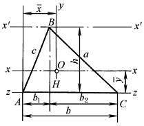 JpB、JpO——回转轴分别为pB、pO的转动惯量,回转轴分别过B、O点与三角形平面垂直 υf——单位面积的质量 JO——回转轴在三角形平面内且通过重心O的任意轴的转动惯量,e1、e2、e3为三顶点与回转轴间的距离 |