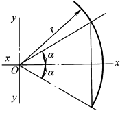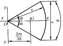 α——弧度 pO、pG——分别通过O、G(重心)垂直图形平面的转轴 s——弦长,b——弧长 |