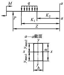 α——圆管内外圆直径之比 Q′——横截面上的切力 b——横截面上,在所求切应力处的宽度 Sx——横截面上切力τ所在的横线至边缘部分的面积对中心轴的静矩 Mb——弯矩 y——截面中任意一点至中性轴x-x的距离 ymax——截面边缘至中性轴的距离 Ix——截面对x-x轴的抗弯惯性矩 I——对于中性轴的惯性矩 Wx——截面对x-x轴的抗弯截面模数 Wy——截面对y-y轴的抗弯截面模数 W——抗弯截面模数 q——一段杆件上的均布载荷 S0——中性轴以上或以下的这部分横截面面积对于中性轴的静矩 b0——截面沿中性轴的宽度 α——载荷平面与截面主轴x-x间的夹角 M——作用在杆件上的力矩 Mmax——杆件上受的最大弯矩 σIV,σ1——根据第四强度理论和第一强度理论的合成正应力 h1——截面外边至中性轴距离 h2——截面内边至中性轴距离 R0——截面形心轴曲率半径 R1——截面外边缘曲率半径 R2——截面内边缘曲率半径 θ——截面m—n与作用载荷的夹角 r——中性轴曲率半径 |