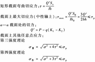 (用于 按直杆弯曲计算;与切力Q对应的 切应力一般很小,可略去不计) |