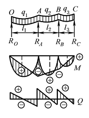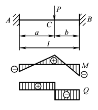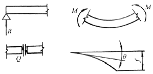 P——集中载荷 q——均布载荷 R——支座反力,作用方向向上者为正 Q——剪力,对邻近截面所产生的力矩沿顺时针方向者为正 M——弯矩,使截面上部受压,下部受拉者为正 θ——转角,顺时针方向旋转者为正 f——挠度,向下变位者为正 E——弹性模量 I——截面的轴惯性矩 |