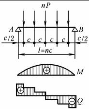 ω值见表梁分段的比值及ω的函数表; a、b、c——见各栏中所示 |