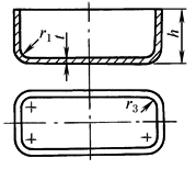 矩形拉深件的壁部圆角半径 r3≥6.3 t r3min≥3t 便于一次拉深成形,要求r3>0.15h |