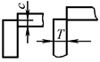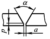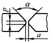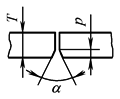 说明:1.不开坡口的对接接头,如仅在一面施焊时,应在其背面加工坡口,以防止产生不熔合或夹渣缺陷,坡口尺寸见右图 2.附图中p=T/3,α=10°~30° |