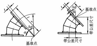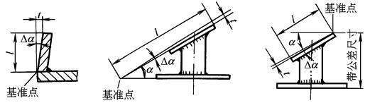 角度未注极限偏差按本表角度偏差的公称尺寸以短边为基准边,其长度从图样标明的基准点算起,见下图。如在图样上不标注角度,而只标注长度尺寸,则允许偏差应以mm/m计。一般选B级,可不标注,选用其他精度等级均应在图样的如表焊接件通用技术条件中表3的技术要求中。 |