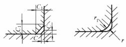 内倒圆(倒角)与它相连的精表面相同,外倒圆(倒角)与它相连的粗表面相同。