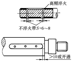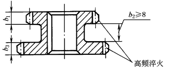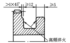 如按表所列数值进行表面淬火后对质量有影响时,则应改变设计结构,因高中频感应圈本身有一定宽度故淬火时不能淬硬到凸肩根部 |