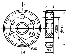 若全部先加工,后淬火,淬火后靠近“f 35”孔处的节圆直径将会下凹。因此6孔只能在高频淬火后制出 |