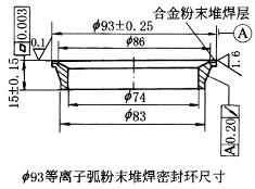在普通碳钢环体上工作面上,采用等离子弧粉末喷焊一层铁基或镍基合金涂层,所用合金粉末仅为整体型合金密封环的15%~20%,喷焊层硬度为61~65HRC |