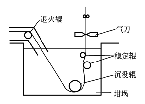 采用等离子喷涂Al2O3+TiO2、MgO-ZrO2、MoAl2O4和NiCrAlY形成的梯度涂层(总厚达1mm),以及用HVOF喷涂Co-WC涂层作为沉没辊和稳定辊工作层