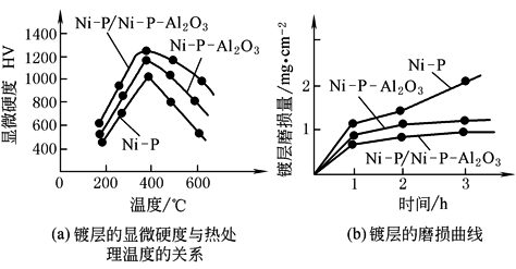(1)Ni-P/Ni-P-Al2O3双层复合镀层 Ni-P化学镀层具有低的孔隙率、较高的耐蚀性、与基体的结合强度高,而Ni-P-Al2O3化学复合镀层经适当的热处理之后,比Ni-P化学镀层具有更高的硬度及耐磨性,但该复合镀层使用中易脱落,耐蚀性低。如果在施镀Ni-P-Al2O3复合镀层前,先镀制Ni-P镀层作为底层,制成Ni-P/Ni-P-Al2O3双层复合镀层,则可将两种镀层的优点结合起来。试验证明,它的结合力和耐蚀性比单层复合镀层都好。与单层Ni-P和单层Ni-P-Al2O3相比,双层复合镀层经400℃热处理后具有更高的硬度,耐磨性也最好 |