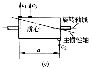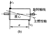 式中 m——转子的质量,kg; e——转子质心对旋转轴线的偏移,即偏心距,m; n——转子的转速,r/min; ω——转子的角速度,rad/s。 由上式可知,重型或高转速的转子,即使具有很小的偏心距,也会引起非常大的不平衡的离心力,成为轴的断裂,轴承的磨损,轴系、机器或基础振动的主要原因之一。所以,机器,特别是高速、重型机器在装配时,其转子必须进行平衡。 平衡是改善转子的质量分布,以保证转子在其轴承中旋转时因不平衡而引起的振动或振动力减小到允许范围内的工艺过程。利用现有的测量仪器可以把转子的不平衡减小到许用的范围,但对平衡品质要求过高是不经济的,也是不必要的。 转子不平衡的两种情况: (1)静不平衡——转子主惯性轴与旋转轴线不相重合,但相互平行,即转子的质心不在旋转轴线上,如图a所示。当转子旋转时,将产生不平衡的离心力。 (2)动不平衡——转子的主惯性轴与旋转轴线交错,且相交于转子的质心上,即转子的质心在旋转轴线上,如图b所示。这时转子虽处于静平衡状态,但转子旋转时,将产生一不平衡力矩。又称偶不平衡。 在大多数的情况下,转子既存在静不平衡,又存在动不平衡,这种情况称静动不平衡。此时,转子主惯性轴线与旋转轴线既不重合,又不平行,而相交于转子旋转轴线中非质心的任何一点,如图c所示。当转子旋转时,产生不平衡的离心力和力矩。