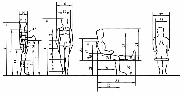以主要百分位和年龄范围的中国成人人体尺寸数据(GB/T 10000—1988) |