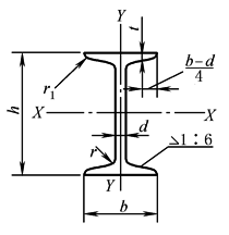 | h—高度 r1—腿端圆弧半径 b—腿宽度 I—惯性矩 d—腰厚度 W—截面系数 t—平均腿厚度 i—惯性半径 r—内圆弧半径 S—半截面的静力矩 | ||||||||||||||