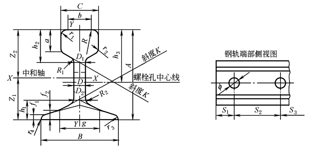 注:1.重轨钢号有U74(抗拉强度Rm不小于780MPa)、U71Mn、U70MnSi、U71MnSiCu(三者抗拉强度Rm不小于880MPa)、U75V、U76N6RE(二者抗拉强度Rm不小于980MPa)、U70Mn(抗拉强度Rm不小于880MPa),其化学成分符合GB 2585的规定。 2.钢轨以热轧状态交货。 |