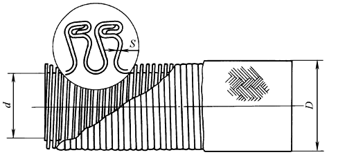 标记示例:公称内径为10mm的S型钎焊不锈钢金属软管 S10-GB/T 3642—1983 用途:电缆的防护套管及非腐蚀性的液压油、燃油、滑油和蒸汽系统的输送管道,使用温度为0~400℃,耐压密封,材料为1Cr18Ni9Ti。 |