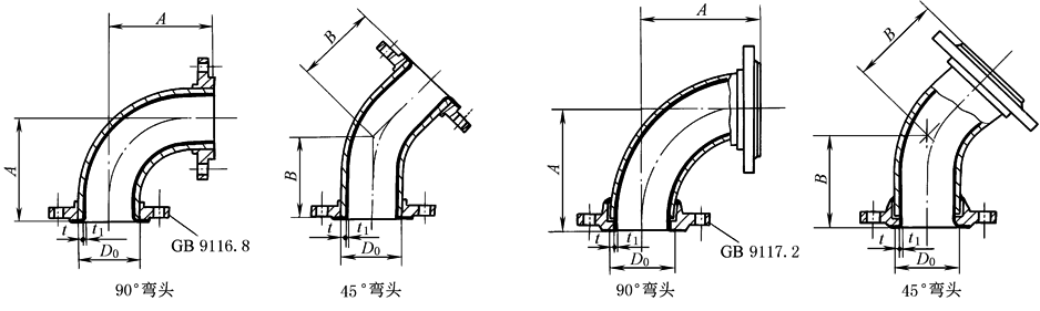 45°弯头,B |