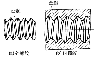 | 在圆柱表面上所形成的螺纹 P—螺距 | |