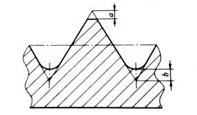 | 在螺纹牙型上,从牙顶或牙底到它所在原始三角形的最邻近顶点间的径向距离 a—牙顶削平高度 b—牙底削平高度 | |