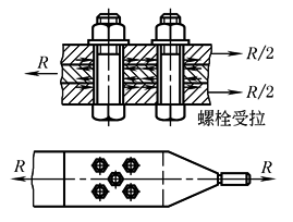 其工作原理是靠螺栓受剪和螺栓与被连接件相互挤压时的变形来平衡横向载荷R。这时螺栓受剪切力,各螺栓所受剪切力Fs大小相等,为
