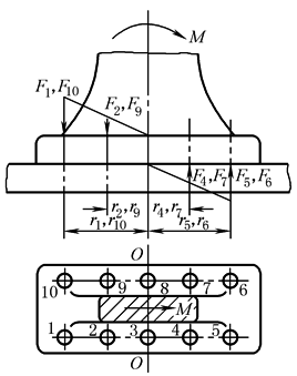 注:在实际应用中,螺栓组的受力经常是上所述四种情况的不同组合。无论螺栓组受力情况如何,均可利用受力分析方法,将各种受力状态转化为上述四种基本受力状态的组合。 |
