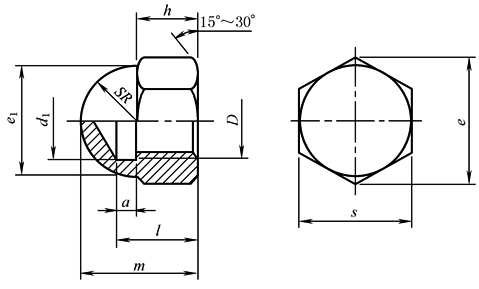 标记示例 螺纹规格D=M10、性能等级6级、表面氧化的盖形螺母,标记为:螺母 SPL 923 M10-6 F9 |