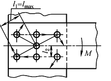 M——旋转力矩,N·mm; l——铆钉中心到铆钉组形心的距离,mm; 铆钉序列号i=1、2、3… |