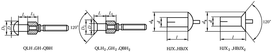 铝/铝QLH D×L、 QLH2 D×L(A) 钢/钢GH D×L、 GH2 D×L(B) 不锈钢/不锈钢 QBH D×L、 QBH2 D×L(C) |