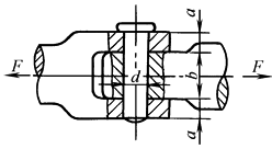 当轴销和被连接件间是静连接时应按抗挤压强度计算,当轴销和被连接件间是动连接时应按抗磨损强度计算,将σpp换为许用压强ppp(表键的选择和连接的强度计算中表2) σbp——许用弯曲应力,对于35、45钢σbp=120~150MPa; d——轴销直径,mm; a,b——连杆头尺寸,mm |