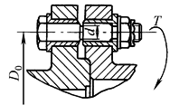 D0——安全销中心圆的直径,mm; τb——剪切强度,MPa,τb=(0.6~0.7)σb σb——抗拉强度,MPa |