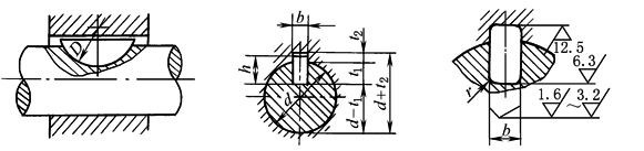 注:1.键槽的对称度公差:为便于装配,轴槽及轮毂槽对轴及轮毂轴心的对称度公差根据不同要求,一般可按GB/T 1184—1996中附表对称度公差7~9级选取。键槽(轴槽及轮毂槽)的对称度公差的公称尺寸是指键宽b。 2.表中(d-t1)和(d+t2)两组组合尺寸的极限偏差按相应的t1和t2的极限偏差选取,但(d-t1)的极限偏差值应取负号。 |