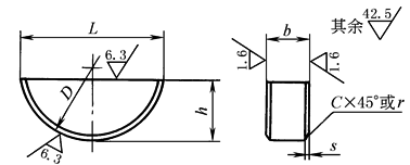 标记示例 宽度b=6mm、高度h=10mm、直径D=25mm、普通型半圆键,标记为:GB/T 1099.1 键6×10×25 |