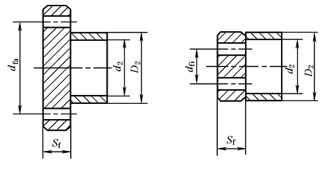 图2 Z1型胀套的连接型式 1—螺栓;2—法兰;3—隔套;4—Z1型胀套;5—轮毂;6—轴 法兰的基本尺寸(图2): dfa=D+10+d1(mm) dfi=D-10-d1(mm)