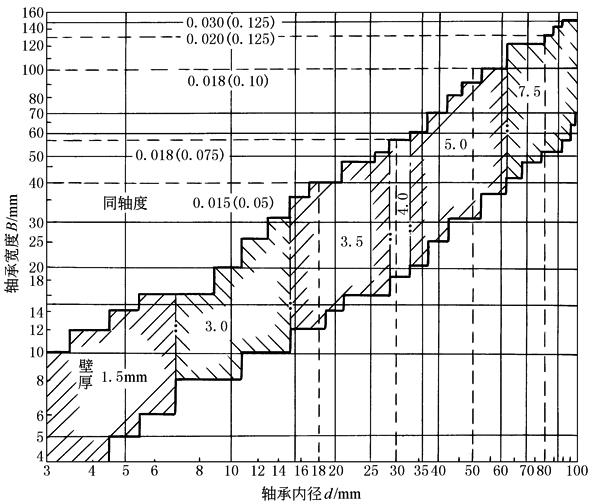 因轴承两端的孔隙一般比中间小,故轴承不宜过窄,但也不宜过宽,最好B/D 接近1 |