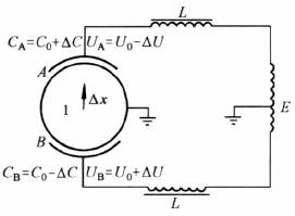 E—— 电源电压,V; L—— 谐振电感,H; C0—— 转子处于平衡位置时的电容量,F; U0—— 转子处于平衡位置时的谐振电压,V; ΔC、ΔU—— 由于转子位置变化量Δx引起的电容、电压变化量 |