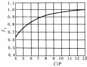 当P>0.1C,同时在联合载荷作用下,则应将性能表上的极限转速乘以f1和f2,得到许可的极限转速 如果所选轴承的极限转速不能满足使用要求,可采取某些改进措施予以提高,如提高轴承精度,适当增大游隙,改用特殊材料和结构的保持架,采用油雾或喷射润滑,改善冷却条件等 |
