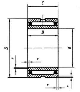 注:滚针轴承可带或不带保持架,可具有一列或两列滚针,外圈上可有或无润滑槽和润滑孔。 |