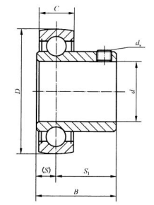 带冲压圆形座外球面球轴承(带顶丝、带偏心套) (GB/T 7810—2017) | |||||||||||||||||||||