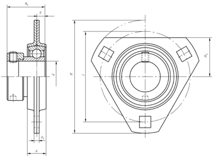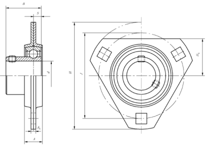 带冲压三角形座外球面球轴承(带顶丝、带偏心套) (GB/T 7810—2017) | ||||||||||||||||||||||