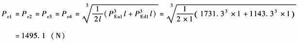 (4)平均载荷Pm计算 按表常见的平均载荷(Pm)计算公式,属于阶梯式变化载荷,Pm=Pc
